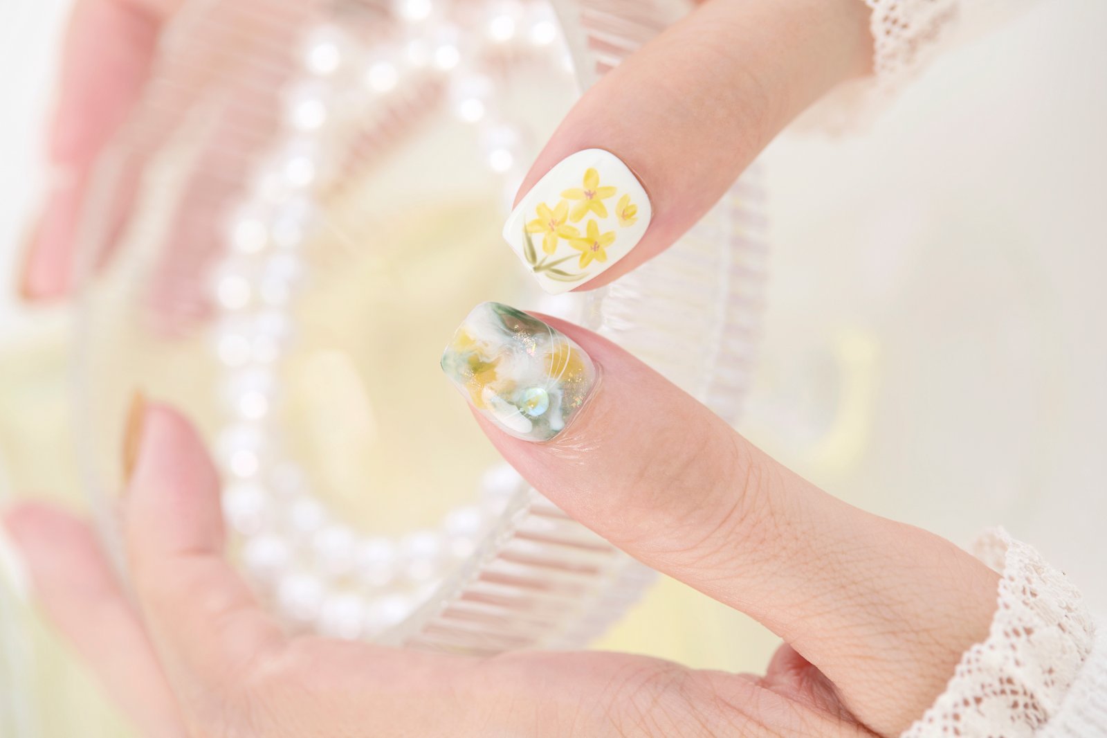 1つ1つネイリストがお作りしておりますので、サンプルと全く同じとは限りません。また、写真の光の加減やお持ちのデバイスの液晶の色味で多少色や見え方が変わる場合がございます。気を付けながら作成しておりますが手作業ですので稀にホコリや細かい傷などが入ってしまう場合がございます。