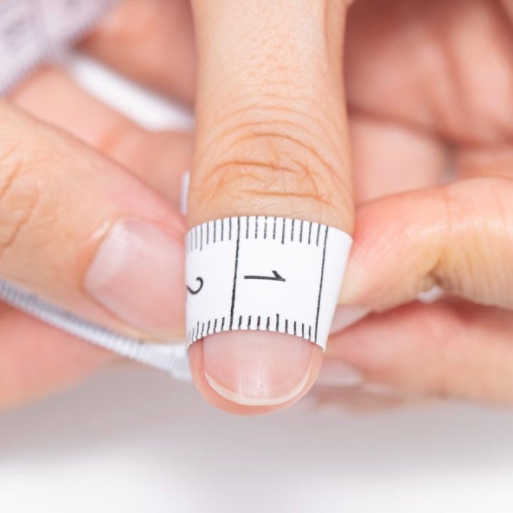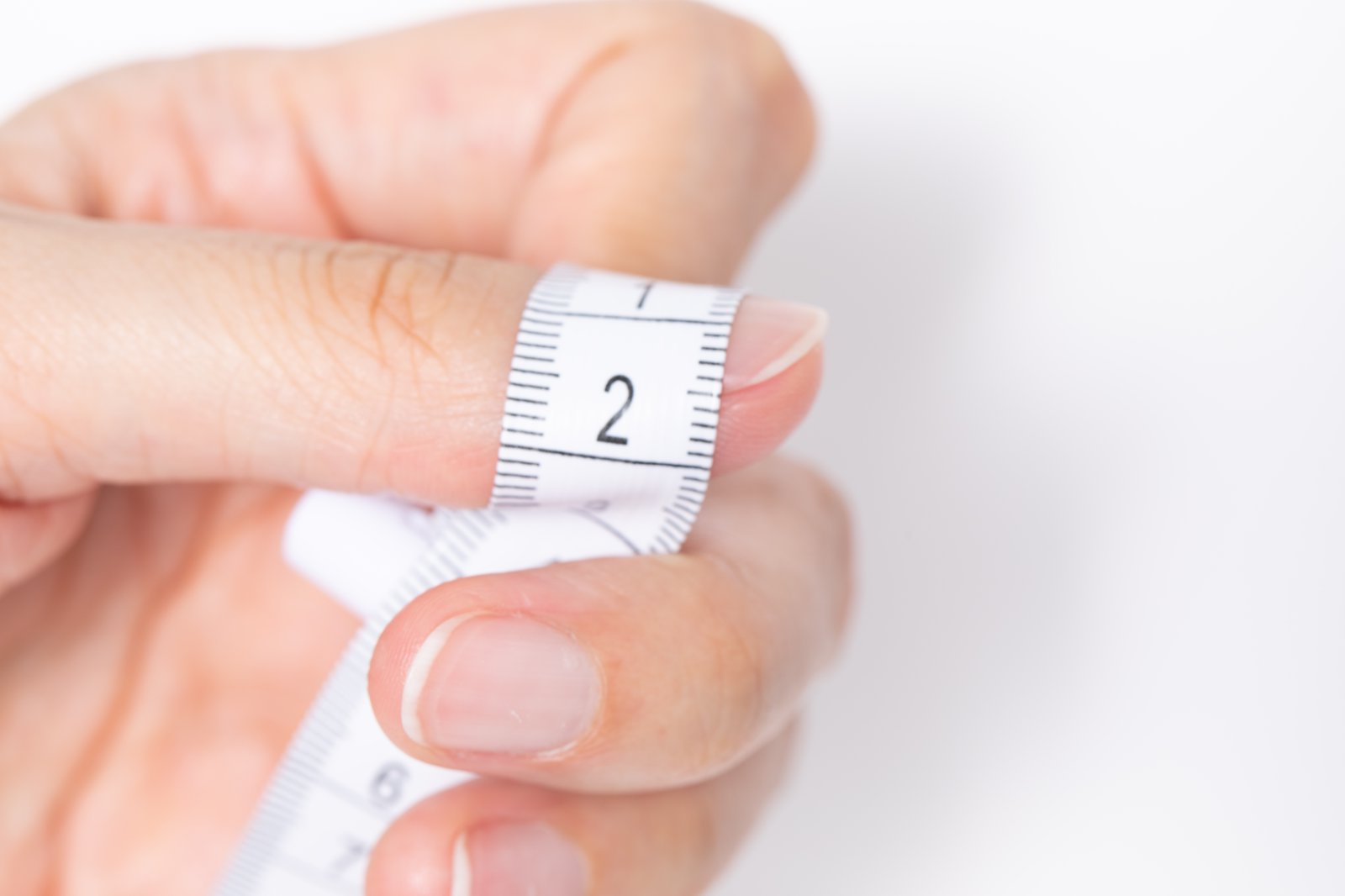 メジャーを爪のカーブに沿って巻きつけ、爪の幅を測ります。