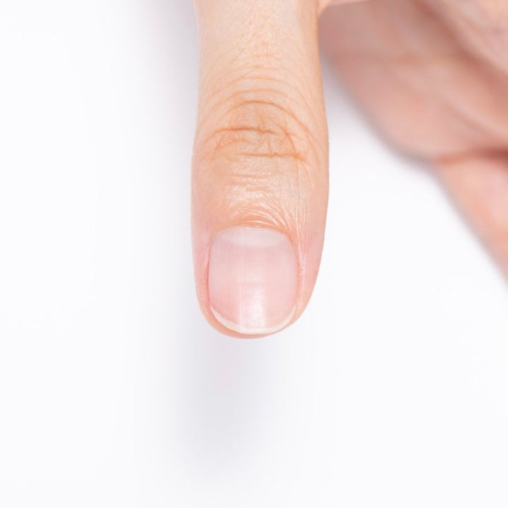 紙を爪の表面に密着させ、爪の幅が最も広い部分(通常は爪の真ん中あたり)の爪の左端、右端の位置に印をつけます。