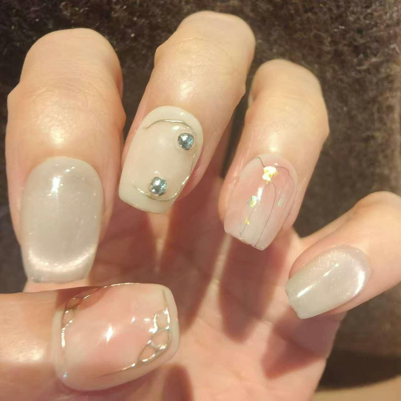 ・⼀つひとつネイリストがお作りしておりますので、サンプルと全く同じとは限りません。また、写真の光の加減やお持ちのデバイスの液晶の色味で多少色や見え方が変わる場合がございます。気を付けながら作成しておりますが、手作業ですので稀にホコリや細かい傷などが入ってしまう場合がございます。ご了承ください。