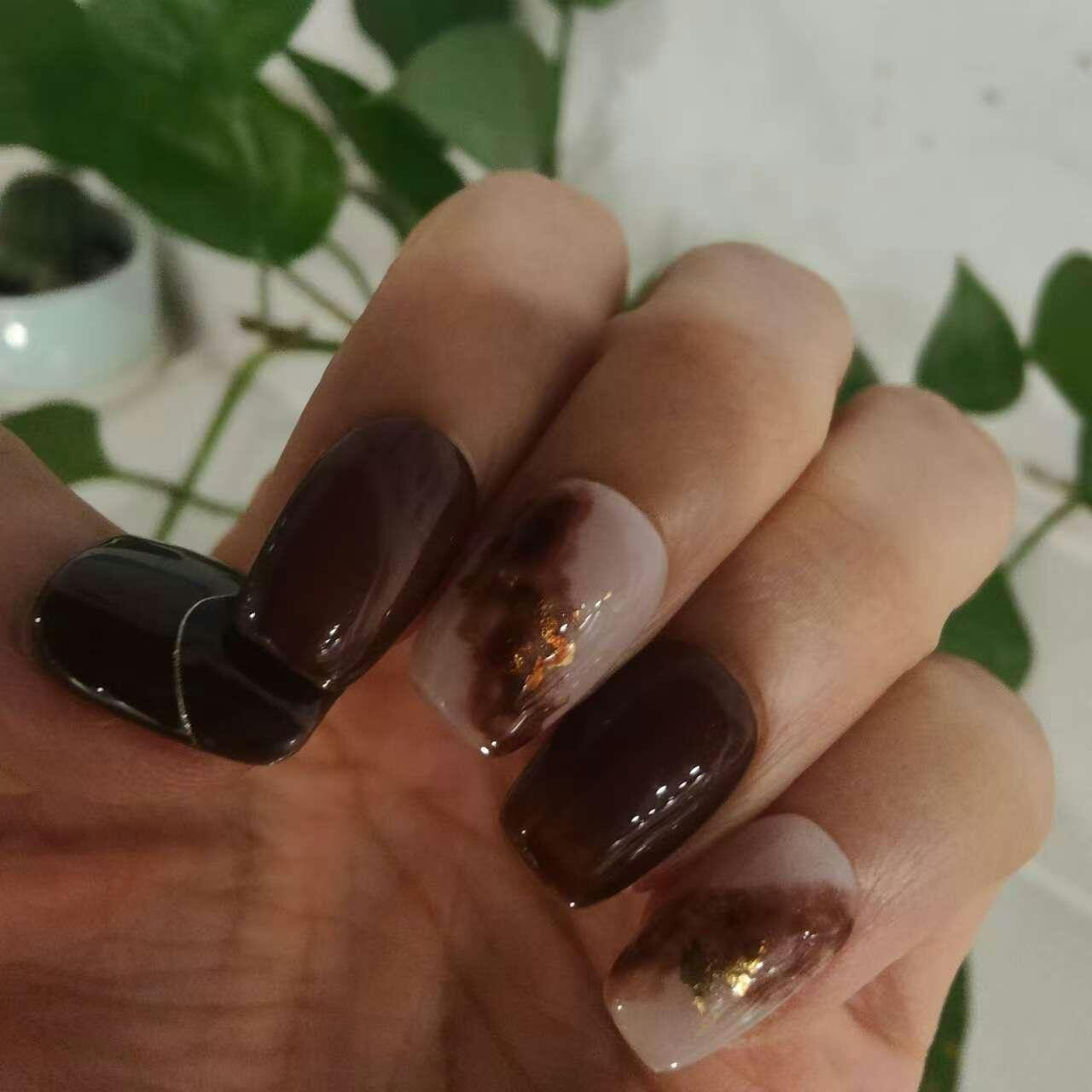 ブラウンネイル|マーブルデザイン|ミディアムバレリーナ|大人上品|ジェルネイルチップ